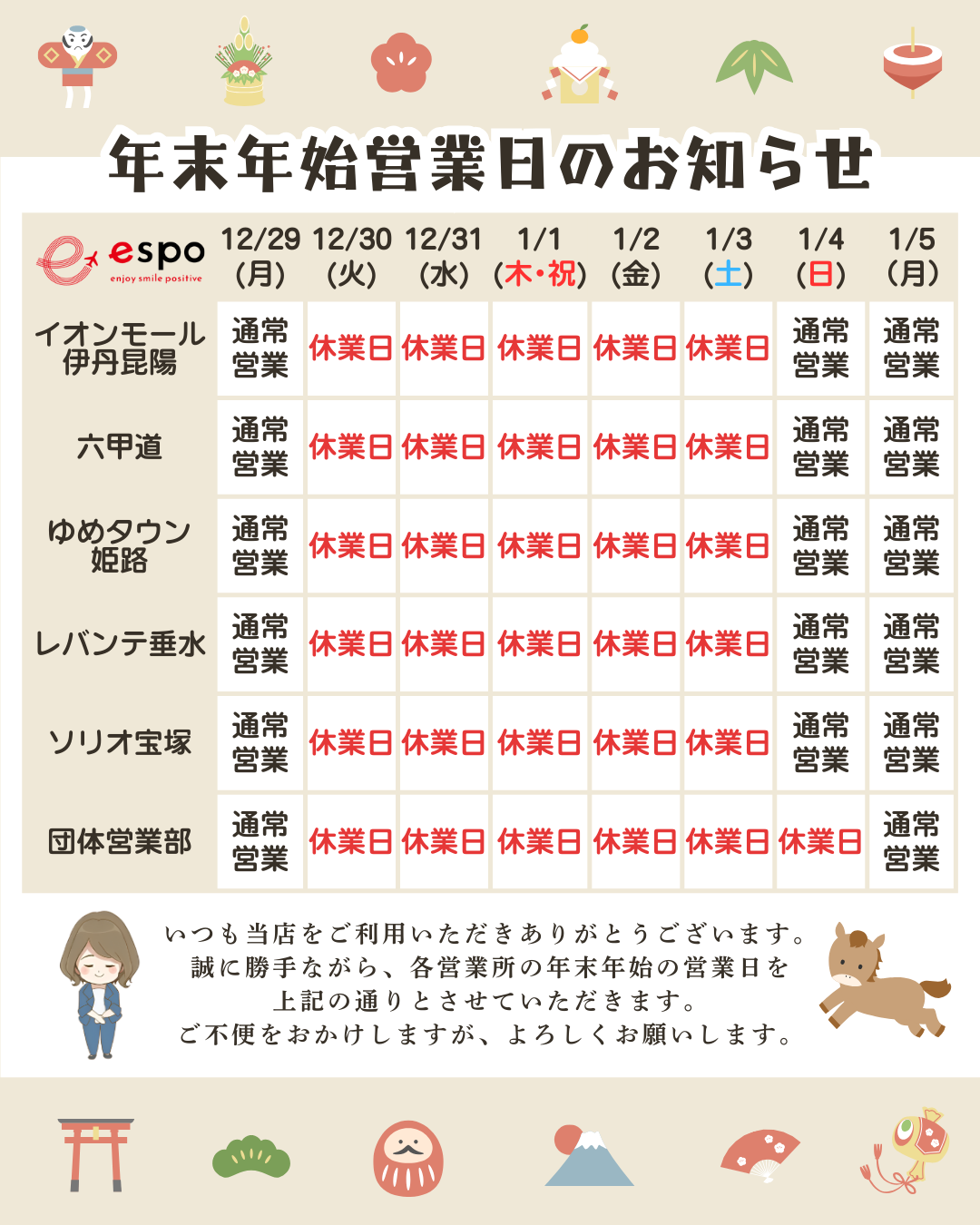 - 各営業所の詳細はえすぽツーリスト 店舗一覧からもご確認いただけます。