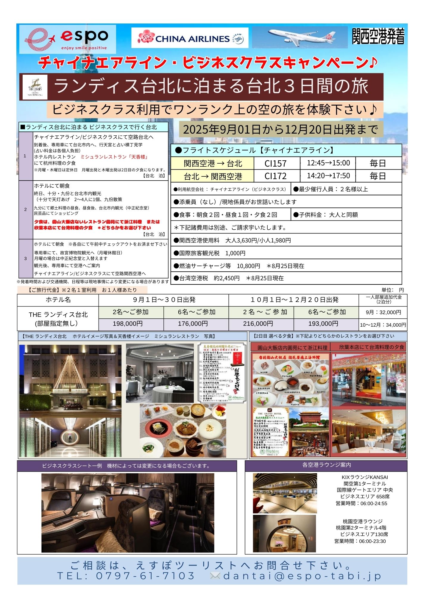 | 利用航空会社 | チャイナエアライン(ビジネスクラス) |