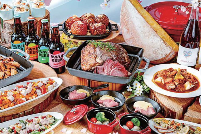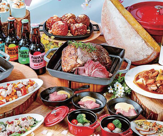 開放的なガラス張りの空間で、グランピングの雰囲気を楽しみながら、キャンプ料理とビストロフレンチが味わえる春限定の贅沢ブッフェをご堪能いただけます。
