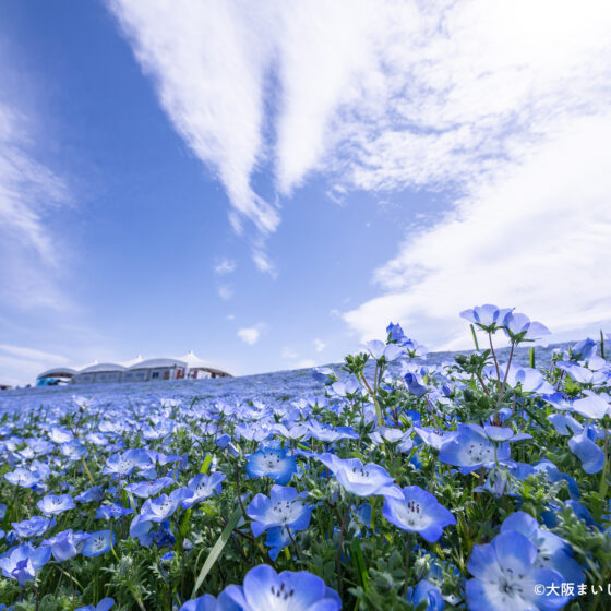 大阪まいしまシーサイドパークでネモフィラ祭り開催中!約100万株のネモフィラと青空のコントラストをお楽しみいただけます。公式キャラクター”ネモにゃん”のオリジナルグッズや限定スイーツなどお楽しみがいっぱい。
