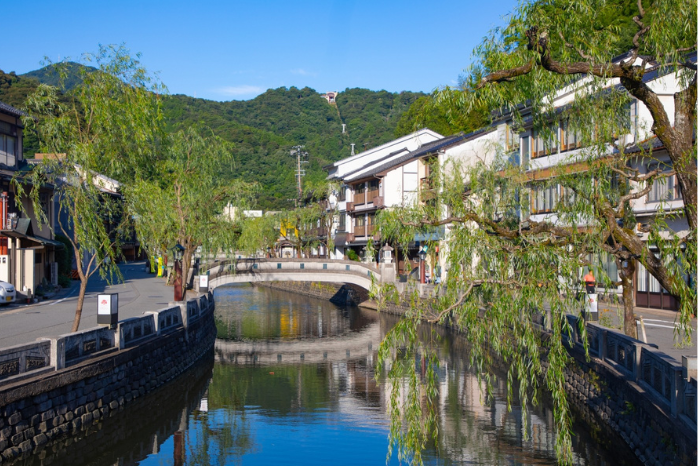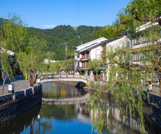 開湯1400年の歴史ある温泉地。温泉街の中心を流れる大谿川(おおたにがわ)沿いには、柳並木と歴史ある木造建築が並ぶ街並みは、写真撮影や街歩きが楽しめます。
